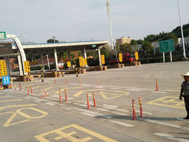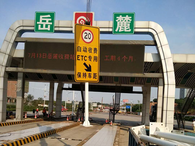 長韶婁岳麓收費站隨車吊做最后信號燈安裝